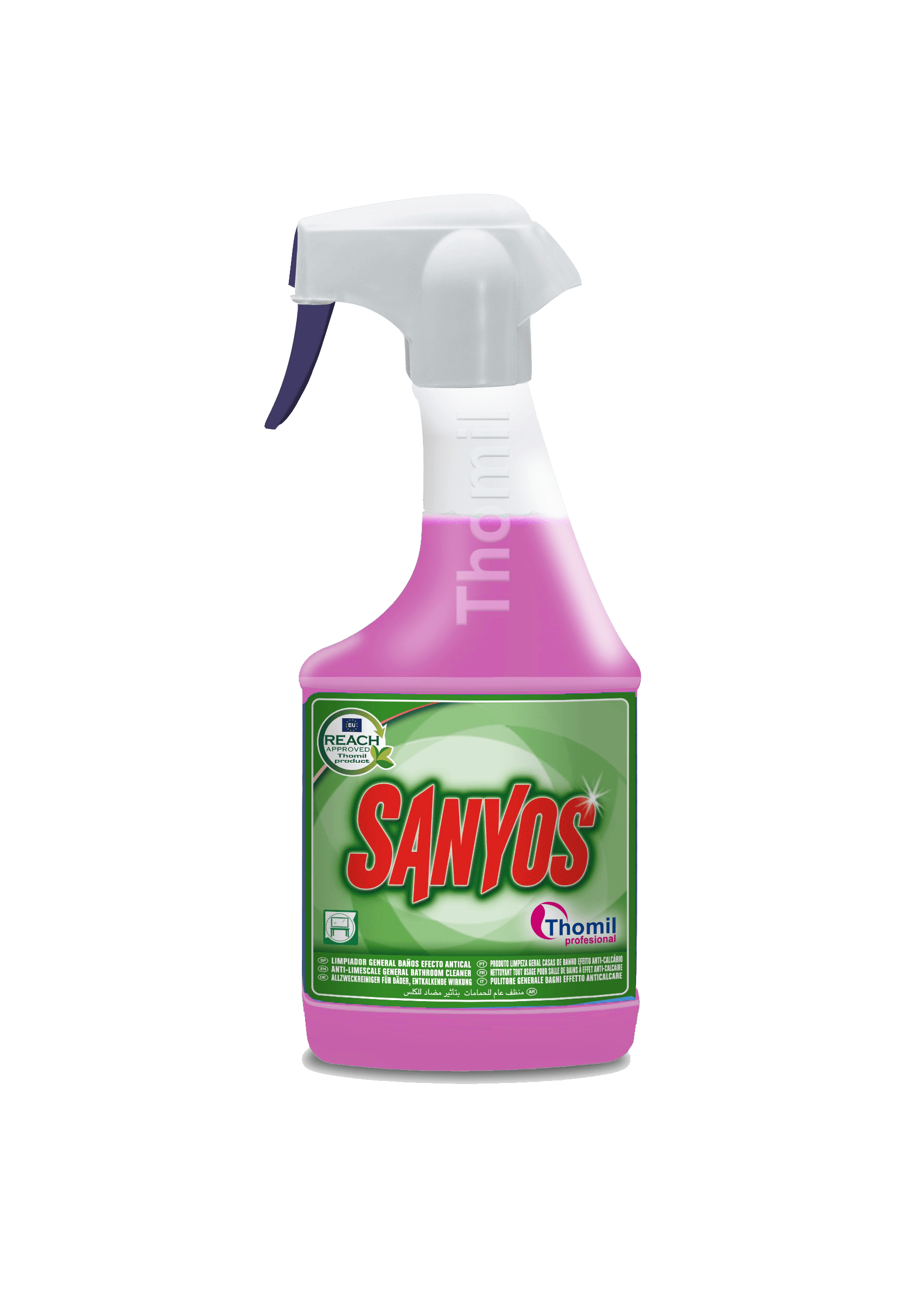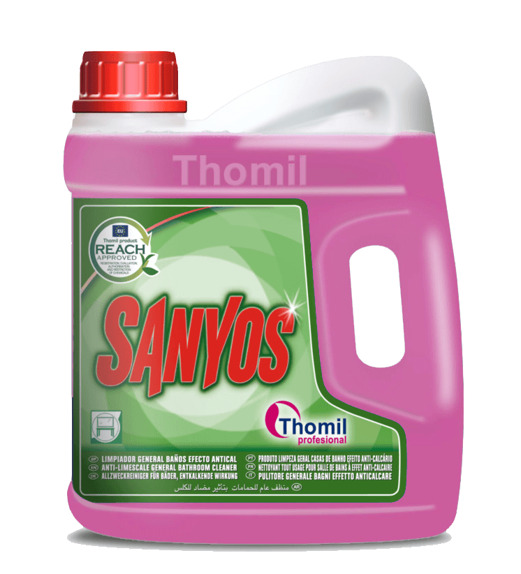 Nettoyant acide pour salles de bains à action assainissante. Élimine facilement les résidus de savon, de calcaire et rouille des pare-douche, carreaux, toilettes, lavabos et robinetterie, sans les endommager.